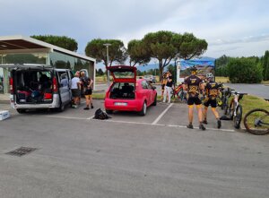 La tappa si è rivelata più dura del previsto perché prima di arrivare a destinazione, il gruppo è stato colto da una vera e propria tempesta con vento fortissimo che addirittura strappava le biciclette di mano e pioggia torrenziale. A stento abbiamo potuto raggiungere il nostro albergo e gettarci sotto una meritata doccia calda.
